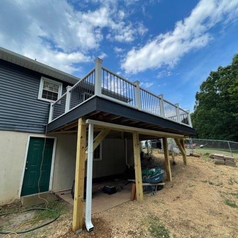 We built this custom deck with an entrance on each side with a spring loaded gates around the client’s existing pool and added a roof for shade